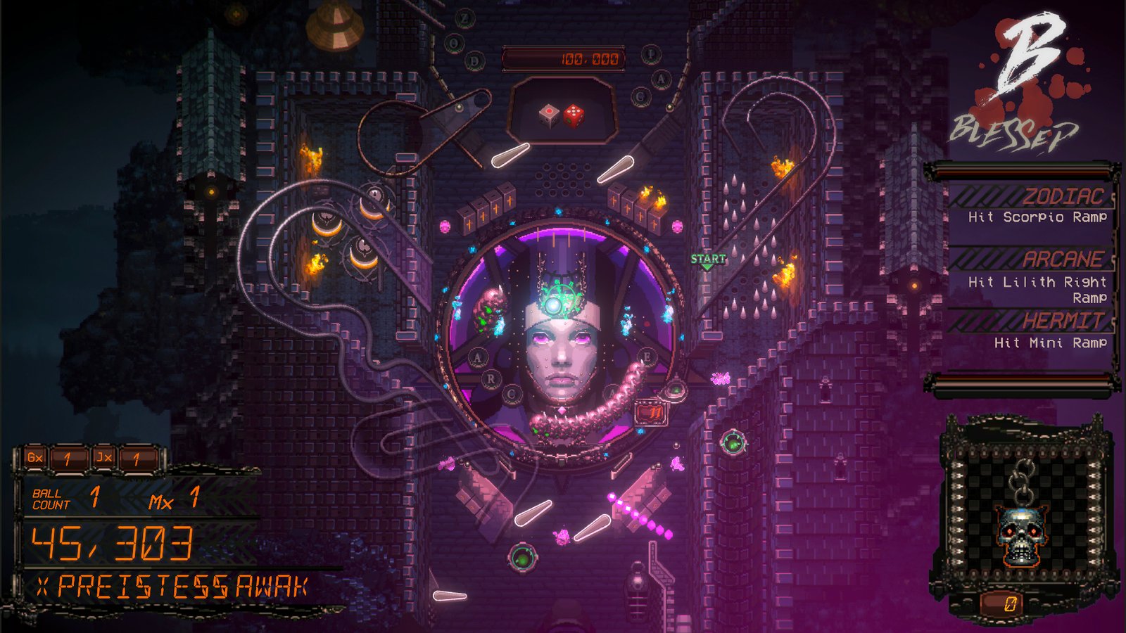 冲击弹珠台荣耀回归!这次还带着面积更大的二维图像、更多的坏蛋、更多的秘密和更加密集的子弹!《DEMON’S TILT》融合了清版射击和砍杀要素,大大拓宽了传统视频弹珠类游戏的边界。游戏特色:巨型三层弹珠台隐晦难解的秘密地狱一般的头目战紧张刺激的特殊模式多珠同台疯狂大奖弹幕射击世嘉MD风格的配乐一座高达三层的大教堂等待着你去探索:一步步解锁那些哥特式的秘密,领略它的深邃。整座教堂里满是各种各样的小头目、坏人、坡道和机械陷阱。独一无二的魔法系统:你可以将敌人层层叠叠的弹幕转化成追踪魔法为你而战,也可以把它们变成黄金,将丰厚的超级大奖收入囊中!连击:用连锁计量表打出连击,持续积累得分动能。连通坡道可以延长连锁计量表的寿命。加快速度、全力进攻,奖励多多!倍增工具:倍增工具可以让得分飙到原来的99倍。赚取全世界的倍增工具,就有可能打出几十亿的高分哦!加成仪式:完成暗黑仪式、拼全单词即可获得大幅加成,还能参加抽奖。全部完成后还能解锁特殊的巫师模式!多珠同台模式:真真正正的多珠同台模式和加珠模式!恶魔一览高阶女祭司:被某种未知的恶魔力量操控着。去转动她的命运之轮,掌控自己的宿命吧。蝎尾狮:集狮、蛇、蝎为一体,受人奴役的野兽。负责监管大教堂,守护那些隐藏得极深的秘密。隐士:大教堂的无名守门人。遗骨阵:戒备森严的骷髅部落。绝大部分攻击都会被它们的盾牌挡住,试着迂回包抄它们吧!莎布鱿鱼圈:才活了一亿两千万年,在古神中只能算是个小娃娃而已!被献祭的羔羊:攻击欲望很强的恶魔,眼柄是弱点。疯狂人造人:一场亵渎神明的实验出了差错。当心它的胆汁!画面风格:“Hi-Bit”,以色彩斑斓的超大二维图像为特征,灵感源自Neo-Geo、SS和PS时代。缩放、旋转、镜头拉远拉近……完全不需要什么爆炸级的CPU!世嘉MD风格的配乐:采用世嘉MD原版音效制作的全新OST,由E.C.2151作曲。