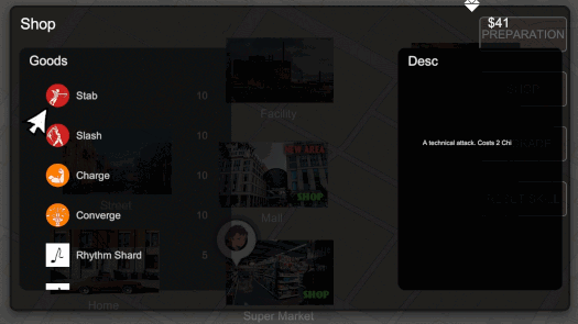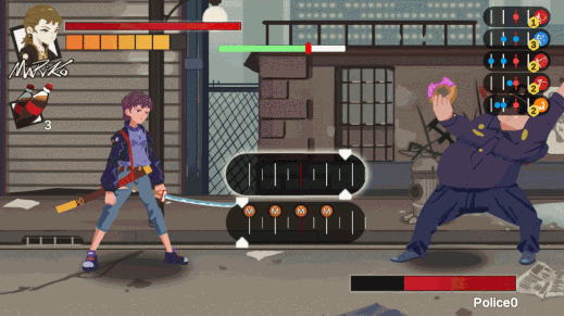 战斗界面上方有一个架势计量表,双方互相拉锯,当一方被压制到头时,会眩晕并易伤。