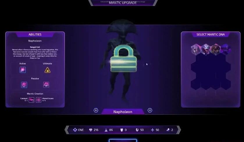 异形士兵可以在飞船上的实验室里,由 Lily 博士研究获得。不同的异形士兵有着不同的能力与天赋,同时异形士兵可以随着游戏发展研究推进,而不断解锁、升级、进化,从而获得全新的被动技能与天赋。培养以及根据战场环境、战斗需要选择合适的士兵出战,将是左右战斗胜利的重要因素。