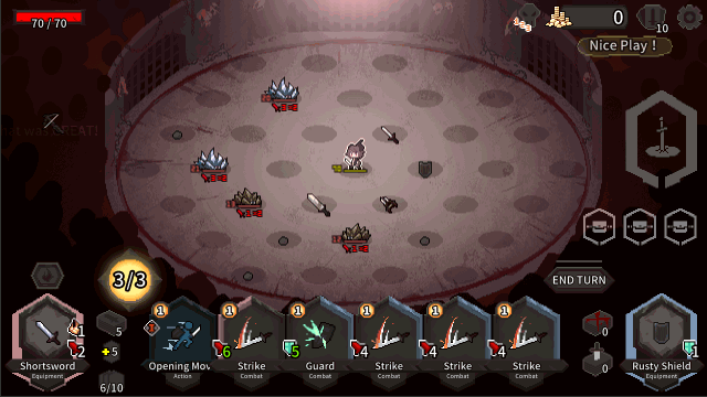 《斗技场的阿利娜》是将「Slay The Spire 杀戮尖塔」+「Into the Breach」= 牌组构格 x 战棋策略!玩家扮演一名为生存而战的奴隶,在斗技场中互相残杀以娱乐嗜血观众。