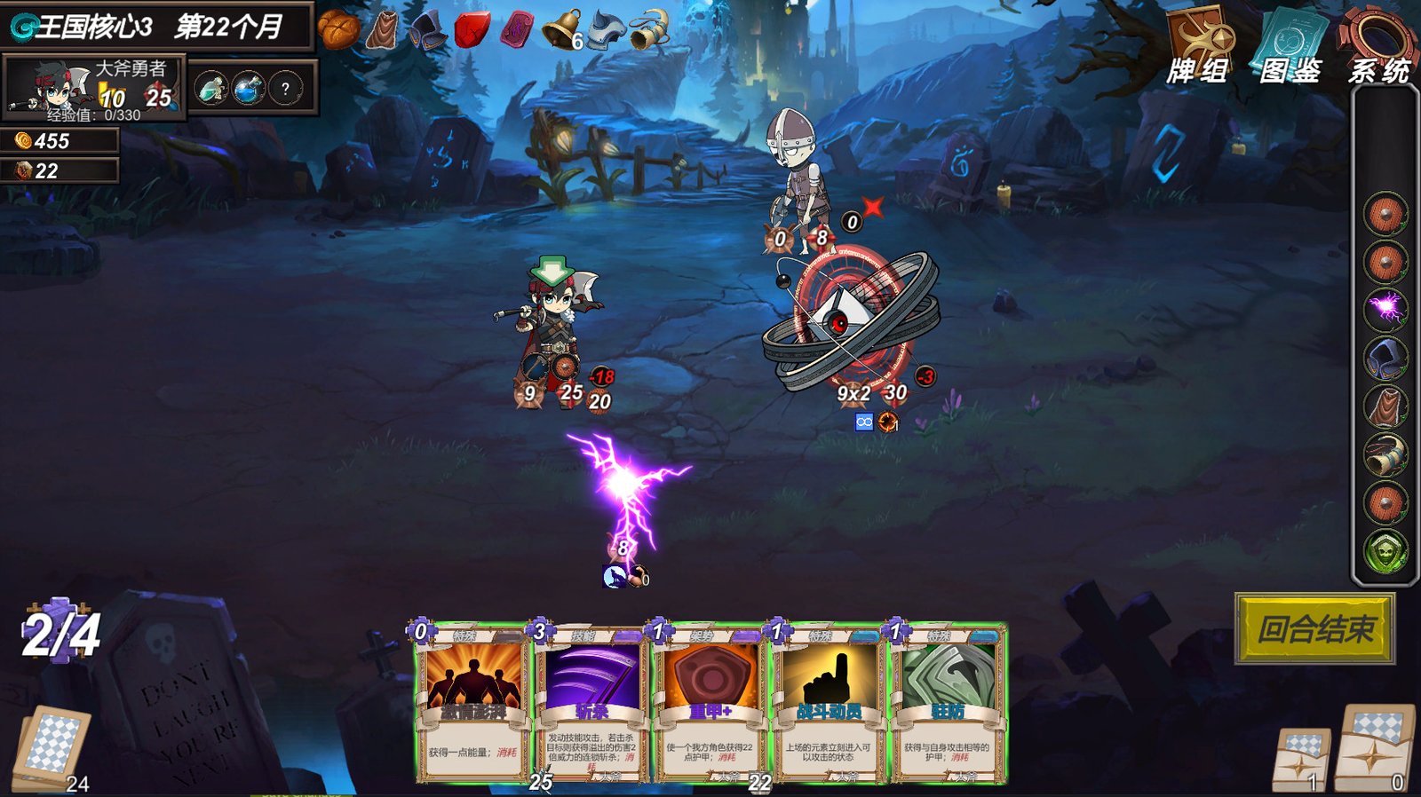 默认自带神器箭筒。每个回合会给手牌减费。所以对于弓箭勇者而言,卡牌的费用相当于技能的CD。