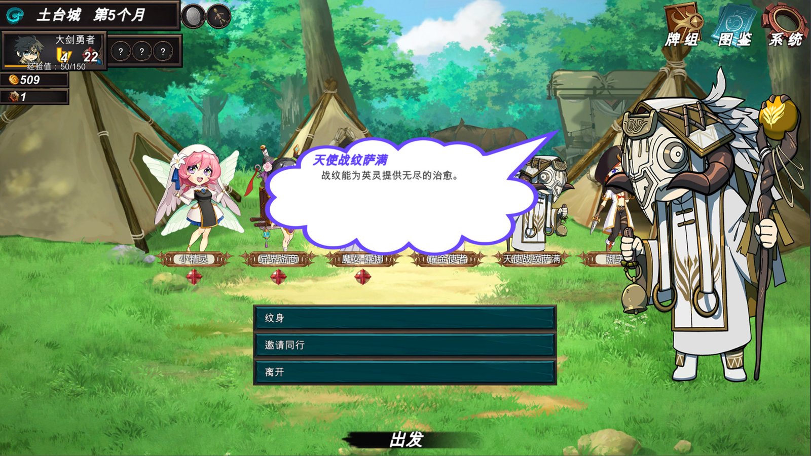 招募的NPC会与大剑勇者并肩战斗。大剑勇者的卡牌也会更偏向给NPC加buff而非自己直接攻击。