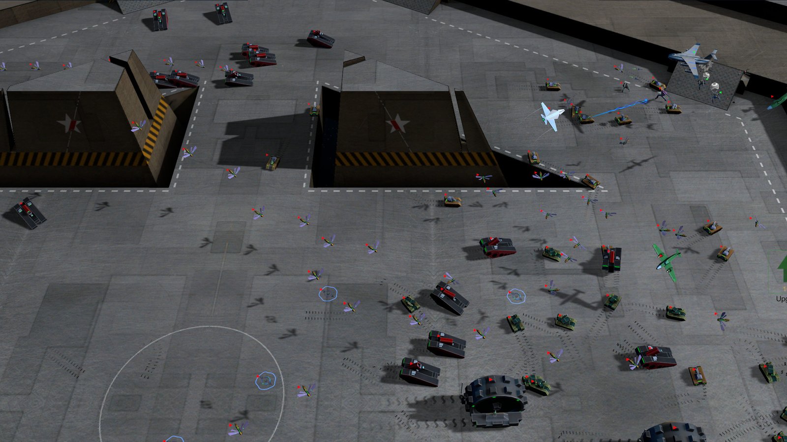 空中进攻单位,有悬停式的蜂群,也有喷气式战斗机,从空中穿透防线,发射导弹进行攻击